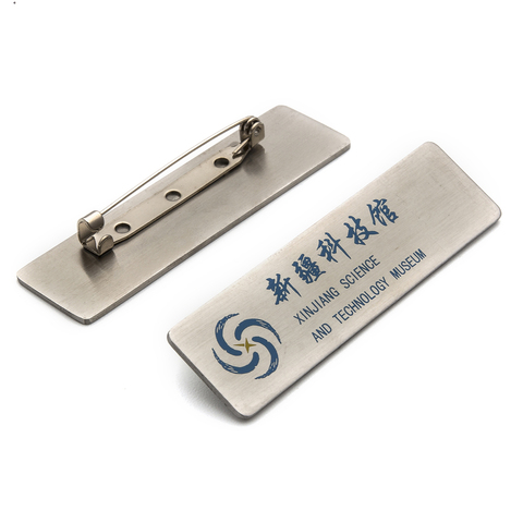 Insigne nominatif en métal personnalisé en gros d'usine avec logo imprimé